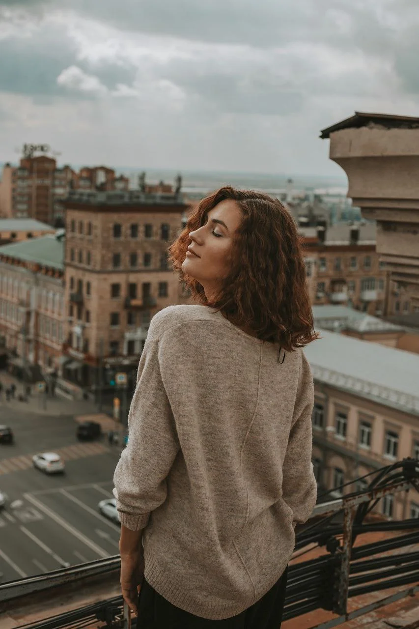 I look into the lens and the soft light glides across my face, like the warm touch of the setting sun. In this frame, I seemed to stop for a moment - a slight half-smile, a calm look, hair falling freely onto my shoulders. The camera caught not just my profile, but my mood: confidence, tenderness and subtle dreaminess.